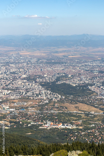 Fototapeta premium View of city of Sofia from Kamen Del Peak at Vitosha Mountain