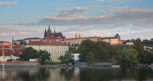 © Konstantin Maslak, Fototapeta premium View of colorful old town and Prague castle with river Vltava, Czech Republic