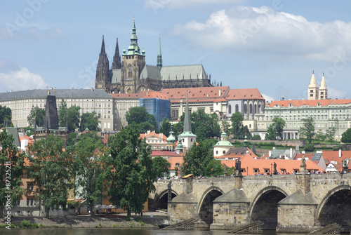 © Alexey Pavluts, Fototapeta premium View of colorful old town and Prague castle with river Vltava, Czech Republic