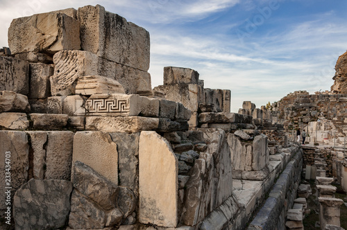 Naklejka premium View of detail stone block, meander motif in Ephesus, Turkey.