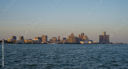 © roxxyphotos, Fototapeta premium View of downtown Detroit skyline and river at sunset a
