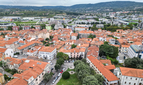 © Yuriy T, Obraz premium view of downtown koper slovenia (red roof buildings) scenic adriatic coast town streets square city center coastline europe european mediterranean sea mountains balkans venetian