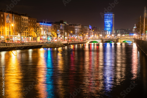 Obraz premium View of Dublin city centre and river Liffey at night