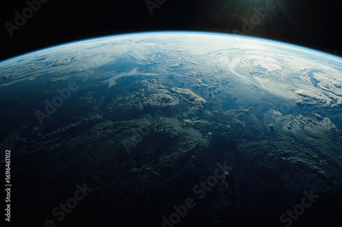 © vxnaghiyev, Fototapeta premium View of Earth from orbit, digital rendering of the globe, image components supplied by a space agency