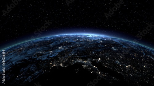 Obraz premium View of Earth from Space Showing Night Lights and Illuminated Landmasses...