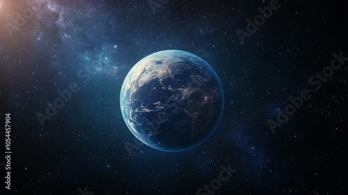 Obraz premium View of Earth from space with vibrant colors and sparkling stars during a...