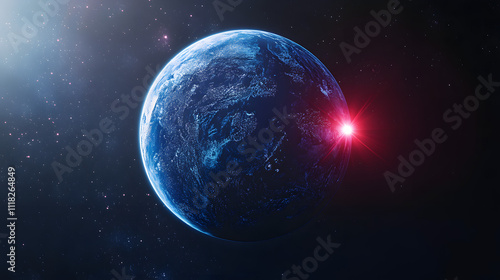 © Nuibai, Obraz premium View of Earth illuminated by a bright star with cosmic elements in the background