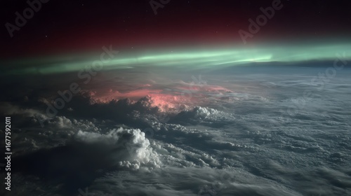 © Muhammad, Fototapeta premium View of Earth's Atmosphere with Aurora and Clouds from Space