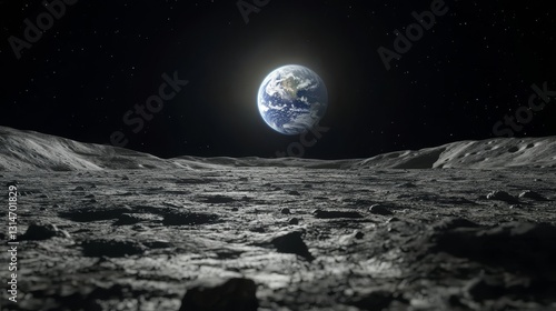 © Naiuang, Obraz premium View of Earth seen from the surface of the Moon