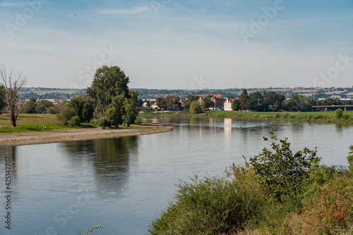 © TambolyPhotodesign, Obraz premium View of Elbe river with nature scenery in the background
