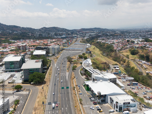 Naklejka premium View of Escazu to the West over Ruta 27 and Toll Booth