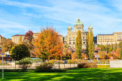Fototapeta premium View of Federal Palace of Switzerland in Bern at autumn