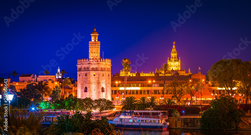 Fototapeta premium View of Golden Tower, Torre del Oro, of Seville, Andalusia, Spain