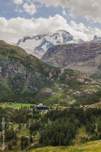 Fototapeta premium View of Gornergrat from the other side of Zermatt valley (vertical)