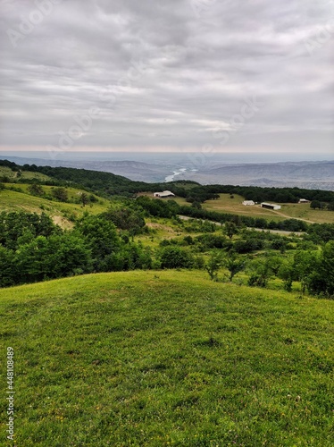 © A.D.89, Fototapeta premium View of green fields and river canyon in Dagestan, Russia