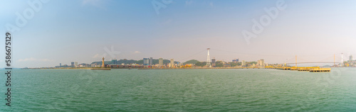 © CravenA, Naklejka premium View of Ha Long City, Quang Ninh province, Vietnam with development ferris wheel, cable car, Bai Chay bridge, near Ha Long bay.