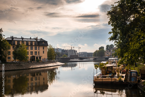 © Milan, Obraz premium View of historic buildings in old town Wroclaw from Oder (Odra) river