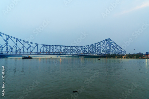 Obraz premium View of Howrah bridge in evening. Kolkata. India