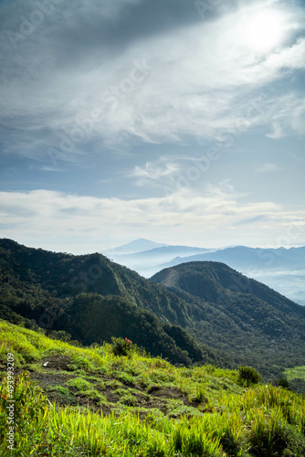 © heririswana, Fototapeta premium View of Indonesia's mountains with wide green grass