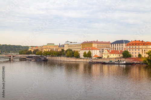 Obraz premium View of Jiraskuv Most and Vltava River. Panorama of embankment with...