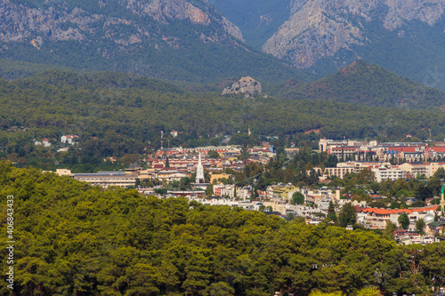 Obraz premium View of Kemer town on a coast of the Mediterranean sea in Antalya province,...