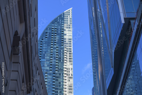 © eugen, Fototapeta premium view of L-Tower, a 58 storey residential skyscraper designed by Daniel Libeskind, located at 8 The Esplanade, Toronto