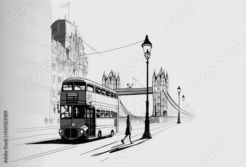 © ink drop, Fototapeta premium View of London city in a hand drawn sketch style. Generative ai