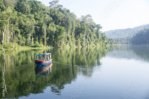 © tuahlensa, Fototapeta premium View of man-made lake of Royal Belum with nice green scenery and stumped wood.