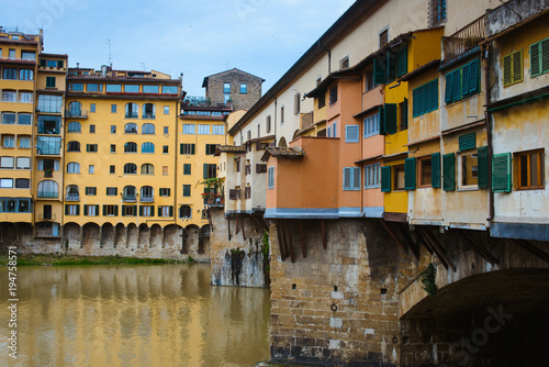 Fototapeta premium View of medieval stone bridge Ponte Vecchio and the Arno River from the Ponte...
