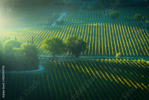 Obraz premium View of Montepulciano Vineyards in Morning Sunbeams, Tuscany, Italy