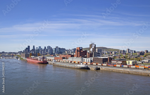 © gdvcom, Naklejka premium View of Montreal city with reflection on the water, day