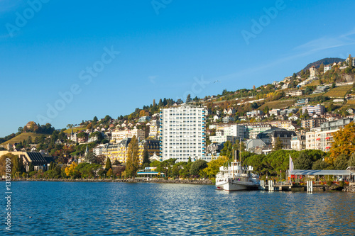 © Samuel B., Obraz premium View of Montreux waterfront, Switzerland