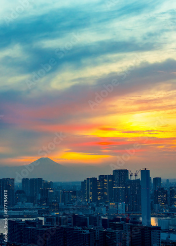 © Tierney, Fototapeta premium View of Mount Fuji from Tokyo, Japan at sunset