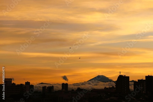 Fototapeta premium View of Mount Fuji from Tokyo with a sea of ​​clouds after a typhoon