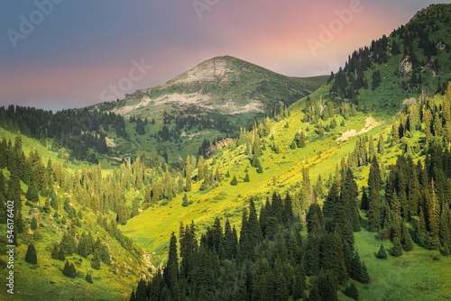 © Roman, Naklejka premium View of Mount Furmanov from Kimasar gorge in the Almaty mountains.