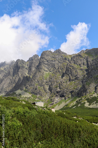 © Julian, Fototapeta premium View of mountain peaks in summer time in High Tatras with cloudy sky.