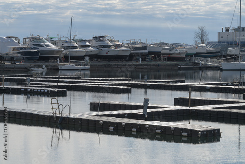 © eugen, Fototapeta premium view of National Yacht Club, 1 Stadium Rd, with boats in storage, off season, Toronto