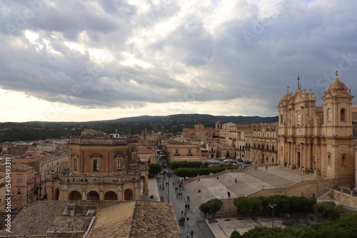 Obraz premium View of Noto Cathedral, Piazza del Duomo and Noto Municipality in Noto,...
