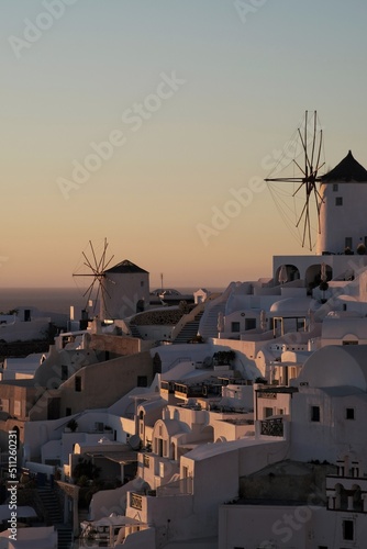 Fototapeta premium View of Oia, the most stunning village of Santorini and an amazing sunset