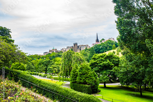 Fototapeta premium View of old Edinburgh, Scotland from Princes Street Gardens
