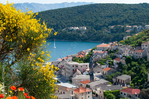 © ggala, Fototapeta premium View of old European city in Croatia and the blooming acacia, the theme of tourism