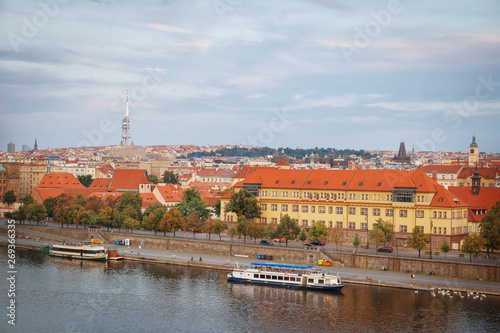 Fototapeta premium View of old Prague, the Vltava river and the embankment. Czech Republic.