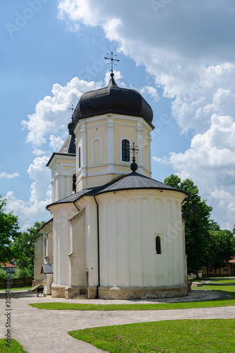 © Olga Gudumac, Fototapeta premium View of old stone summer church in Capriana Monastery, Moldova