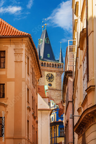 Fototapeta premium View of Old Town Hall medieval clock tower from Prague charming historical...