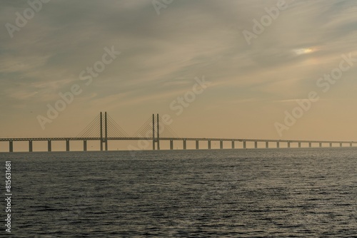 Obraz premium View of Oresund Bridge at sunset. Malmo, Sweden