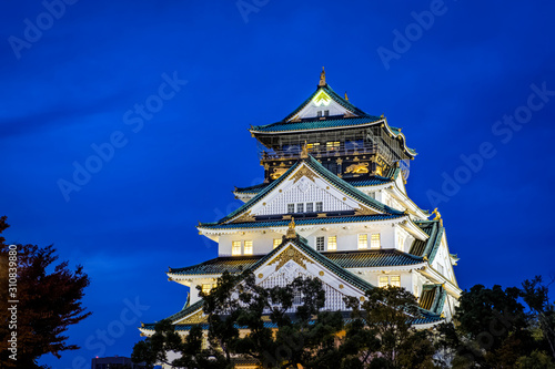 © Willy, Fototapeta premium View of Osaka Castle Lit Up during the Night