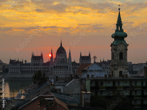 Naklejka premium View of Parliament and roofs of Budapest, Hungary