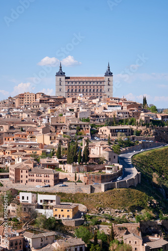 Fototapeta premium View of part of the city of Toledo with the Alcazar at the top