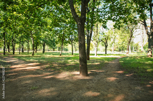 © Pixel-Shot, Obraz premium View of path in green park on sunny day