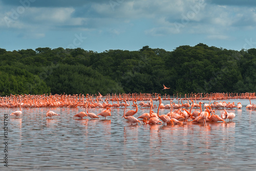 Obraz premium View of pink flamingos in Celestun, Mexico